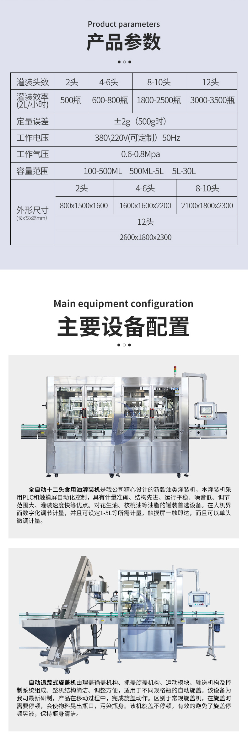 當油桶移動到灌裝頭下方時,灌裝頭會自動啟動,開始進行自動灌裝。在這個過程中,灌裝頭會感應油桶的存在,并根據設定好的參數自動進行灌裝。當油桶已經達到預定容量后,灌裝頭會自動關閉,停止灌裝。