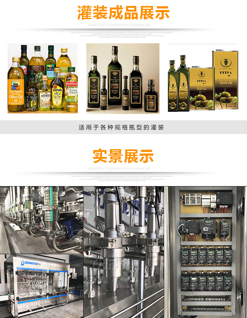 • 該食用油灌裝機采用流量計式計量灌裝原理多項認證適用于各種規格(1-5升)的南瓜籽油、榛子油、牡丹籽油、芝麻油、核桃油、山茶油、亞麻籽油、棉籽油、橄欖油、大豆油、玉米油、菜籽油...